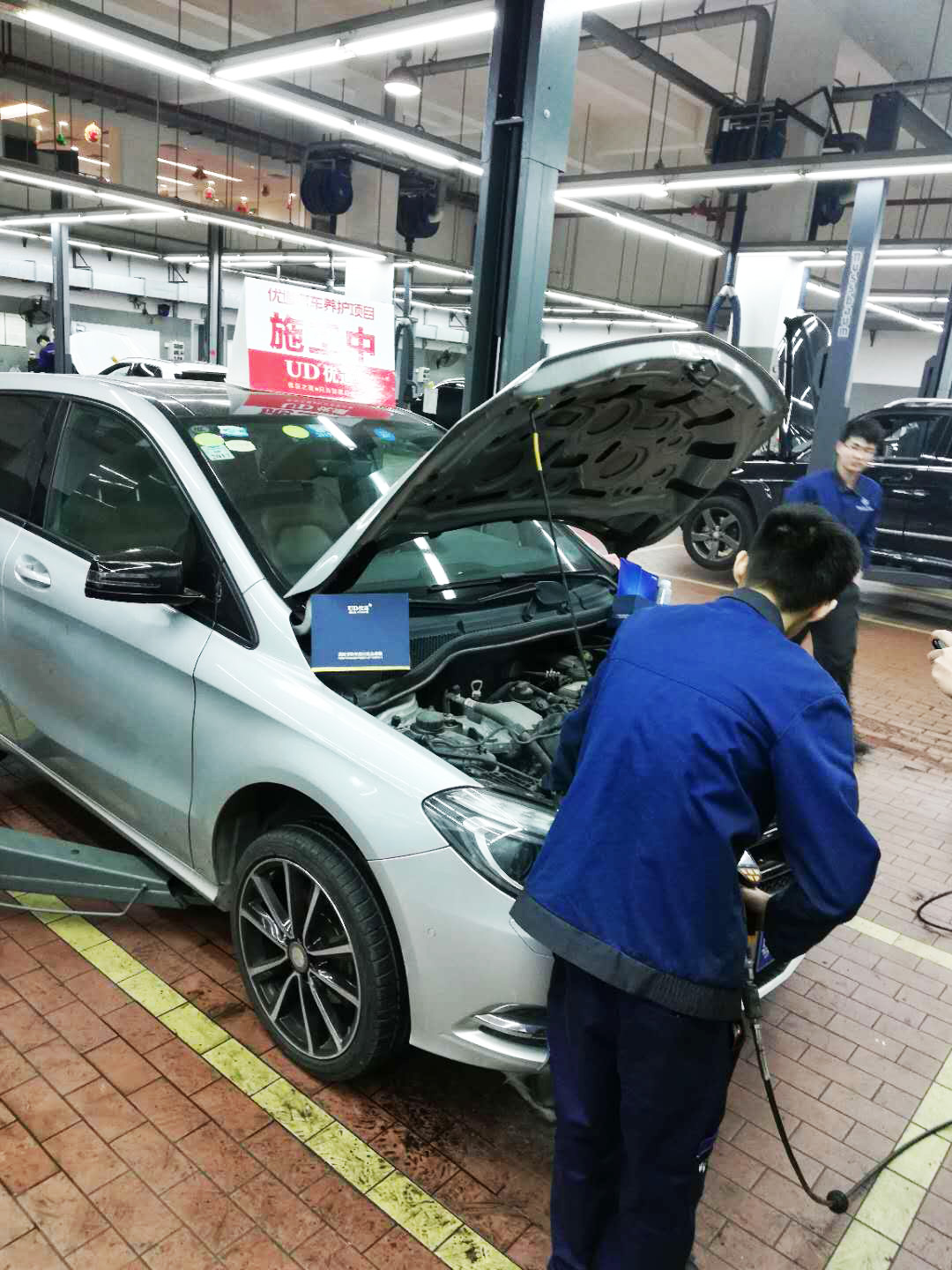 奔馳新B200正在進(jìn)行優(yōu)道渦輪保養(yǎng)