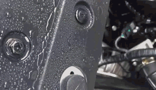 大家可以看到,噴霧器出來(lái)的水在發(fā)動(dòng)機(jī)表面上凝聚的水珠會(huì)像荷葉上的露珠一樣,一滴一滴,呈圓形,輕輕一吹水珠驅(qū)散,說(shuō)明發(fā)動(dòng)機(jī)艙表面已經(jīng)鍍上了一層保護(hù)膜。