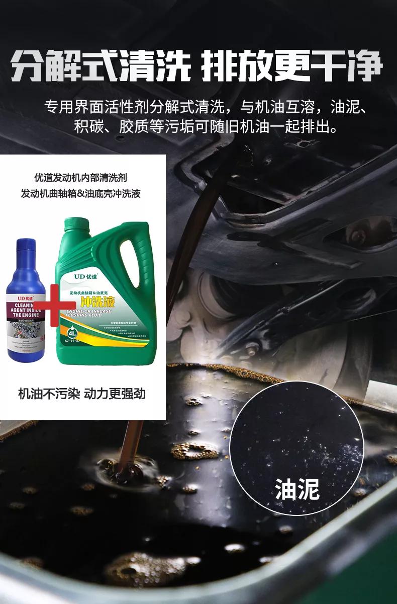 而傳統(tǒng)換油清洗不干凈,使用優(yōu)道發(fā)動機內(nèi)部清洗劑+優(yōu)道油底殼沖洗液,可以免拆清洗曲軸箱內(nèi)部及油底殼底部,迅速分解、沖洗發(fā)動機內(nèi)部的各種膠質(zhì)、頑固污垢、積碳及氧化沉積物,可有效避免加入新機油的二次污染,保證良好潤滑,延長機油及引擎使用壽命。