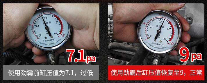 所以,它能夠快速有效的穩(wěn)固氣缸壓力、提升動(dòng)力、恢復(fù)車輛正常燃油消耗,達(dá)到大幅延長(zhǎng)發(fā)動(dòng)機(jī)使用壽命的目的。最直接的感受就是,加入勁霸缸壓修復(fù)劑后,發(fā)動(dòng)機(jī)引擎噪音,立刻顯著降低,壓力值恢復(fù)常態(tài)。