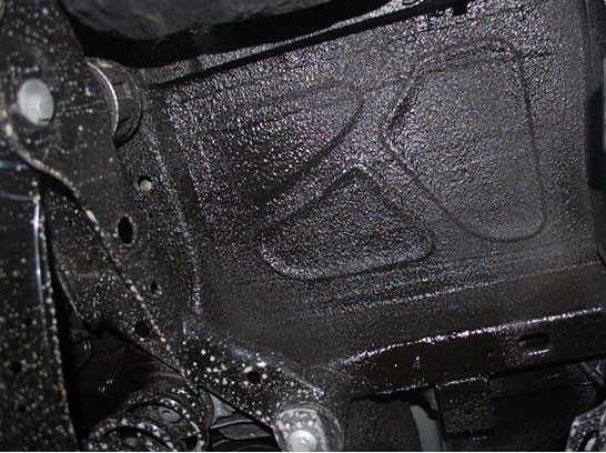 為了讓附著物完全發(fā)揮效力,要將汽車底盤仔細(xì)洗干凈。首先用舉升機將汽車升高,拆除車輪和內(nèi)葉子板保護(hù)膠板,用高壓水槍;中洗底盤,去除底盤上粘結(jié)的油泥和沙子,還可以用常見的鐵絲網(wǎng)刷,把車底附著的泥沙、油污、腐銹和其他雜物刮掉,直到露出金屬的本色為止。再用吹水槍將縫隙中的水吹出,并用毛巾將水擦干。將汽車底盤徹底清洗一遍。底盤裝甲并非底盤全部裝甲,像發(fā)動機油底殼、變速箱外殼、進(jìn)排氣岐管、排氣管、避震彈簧、避震器、方向軸等部位,在噴涂時都要拿遮蓋紙進(jìn)行包裹,避免防銹材料噴在上面。由于發(fā)動機底殼、變速箱外殼需要散熱,所以如果防銹材料噴在它們上面,會影響她們的散熱;還有排氣管上,更不能直接噴涂在上面,車輛行駛時排氣管的高溫,會將表面的附著物烤焦而發(fā)出難聞的臭味。所以,在做底盤裝甲的時候,必須先用遮蓋紙將這些部位遮蓋、尤其注意車身上的傳感器和減震器要遮蓋好。仔細(xì)包裹好關(guān)鍵部位,就開始噴涂了。底盤防銹膠經(jīng)高壓噴槍噴出,均勻覆蓋在車輛底盤上。一般來說,底盤裝甲的厚度在1mm-3mm之間,不能太薄,也不要太厚(浪費材料)。在晴朗干燥的施工天氣下,汽車在噴涂完工2至4小時后就能投入使用。但完全干燥還需要等待三天,在這三天內(nèi)、最好不要讓底盤接觸到水。干燥后的保護(hù)膜可以很好地粘附在清潔的汽車底盤上,具有極強的耐磨性和抗腐蝕性。當(dāng)然,材料,工藝等決定效果。