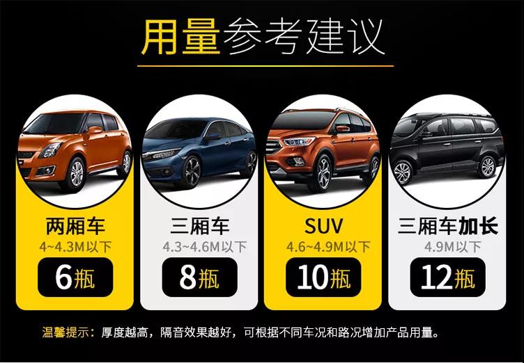 3、水溶性底盤防銹膠。由于它的稀釋劑為水,不含有毒物質(zhì),所以又稱水溶性底盤防銹膠為環(huán)保型底盤防銹膠,現(xiàn)時在歐美國家大多是選用這類產(chǎn)品。水溶性底盤防銹膠附著力強、膠層彈性較好,底盤隔音效果顯著,是做底盤裝甲的首選材料。4、復(fù)合高分子樹脂漆。第一代和第二代產(chǎn)品都為非環(huán)保型,正逐步退出市場,第三代為環(huán)保型,但由于施工受溫度、濕度的影響較大,耗時較長。第四代環(huán)??旄尚偷妆P裝甲具有高防水性,高彈性,高防腐性,高吸音降噪性,并在環(huán)保的基礎(chǔ)上運用其獨特的深層電離四元接枝技術(shù),將四種不同性能的高分子材料融為一體,它不受濕度、溫度的控制,大大縮短了施工時間,比以往的底盤裝甲固化時間縮短了4倍!極大地方便了車主和施工人員。
