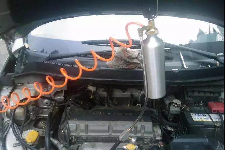 3.清洗發(fā)動機內(nèi)部積碳,我們到維修店內(nèi)做積碳清洗時,往往會使用專業(yè)的施工工具進行“打吊瓶”工作,與下面這張圖相似。