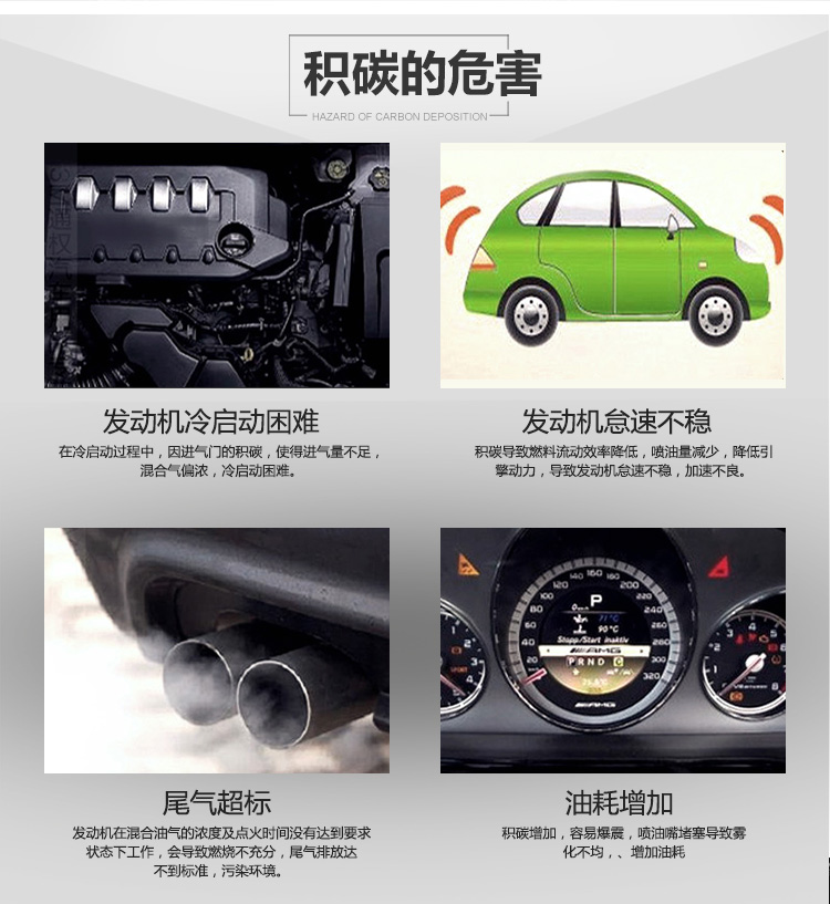 燃油寶的主要成分是一種高分子無灰表面活性物質(zhì)。榮譽(yù)汽車燃油中的這種高分子表面活性物質(zhì),憑借其極強(qiáng)的吸附、潤滑、增溶、分散功能可使沉積在金屬表面的積碳瓦解,脫落,分散包裹成極細(xì)微的碳粒膠束,這些油溶性的細(xì)微碳粒膠束,伴隨這新鮮的燃?xì)饣旌衔镆黄疬M(jìn)入燃燒室燃燒,部分不能燃燒的積碳隨尾氣排到大氣中。這就是燃油寶能夠起清潔作用的原因。