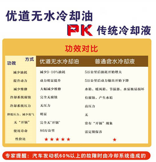 任何車型均可升級成優(yōu)道無水冷卻油
