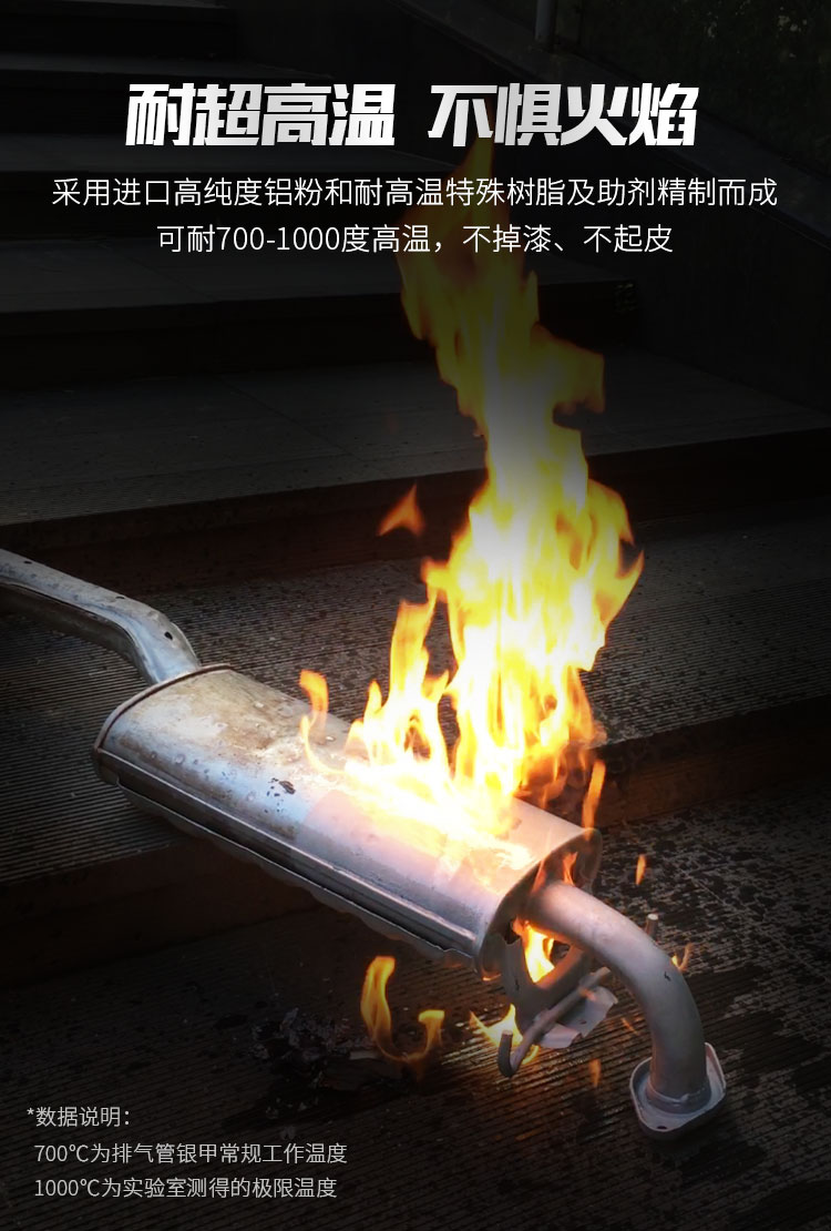 Character:This product contains import high purity zinc dust and special high-temperature resistance resin and agents, unti-rust with stronger negative electrode, fast drying, easy working, firm surface, 500℃ resistance. It can protect the escape-pipe,silencer not crossion.