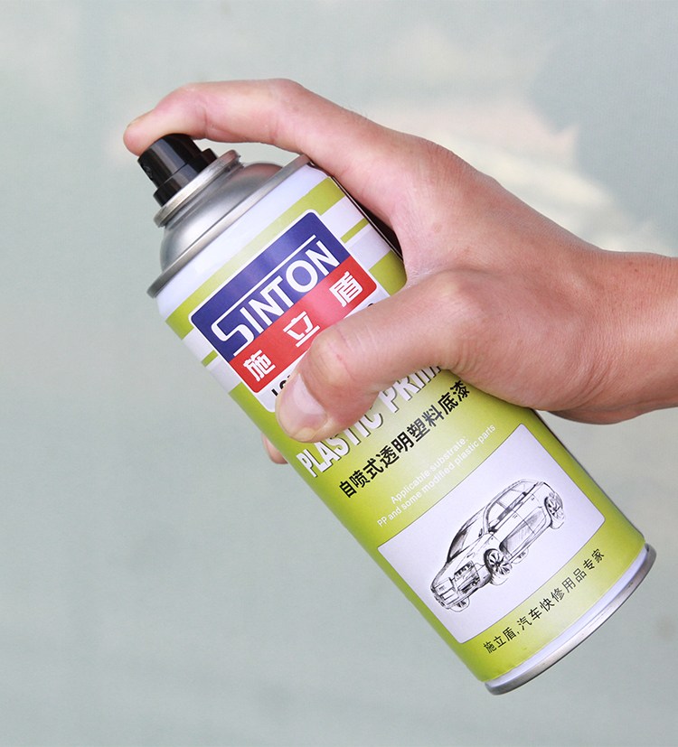 由于前后杠是塑料部件,直接噴涂犀牛漆附著力比較差,容易脫漆掉色。因此,在噴涂犀牛漆前,施工師傅先預(yù)先使用了施立盾塑料底漆對(duì)前后杠進(jìn)行噴涂處理。