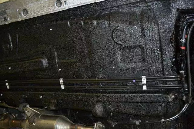 所以這層防護涂層,因為它有一定厚度且具有彈性,不僅可以抵抗行駛時飛濺而來的小石子,還可以降低車輛托底時對底盤的傷害,即便是酸雨、溶雪劑、洗車堿水都無法侵蝕透,從而還有效防止底盤銹蝕。