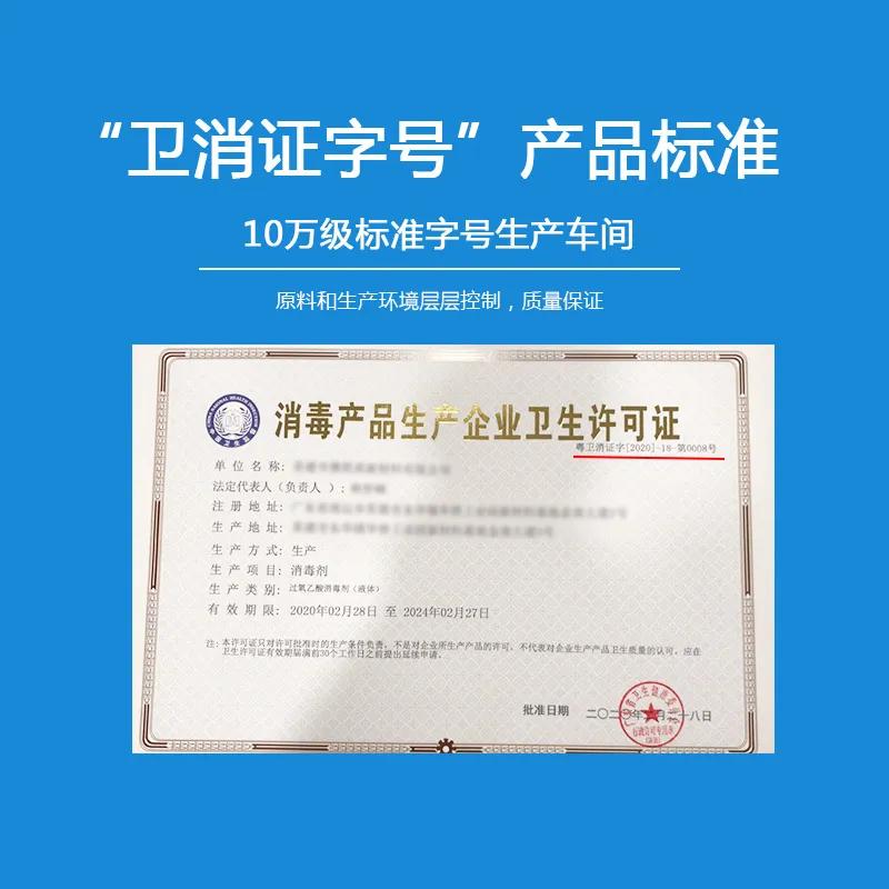 具有國(guó)家批準(zhǔn)消毒產(chǎn)品生產(chǎn)企業(yè)衛(wèi)生許可證,證件齊全,安全可靠。