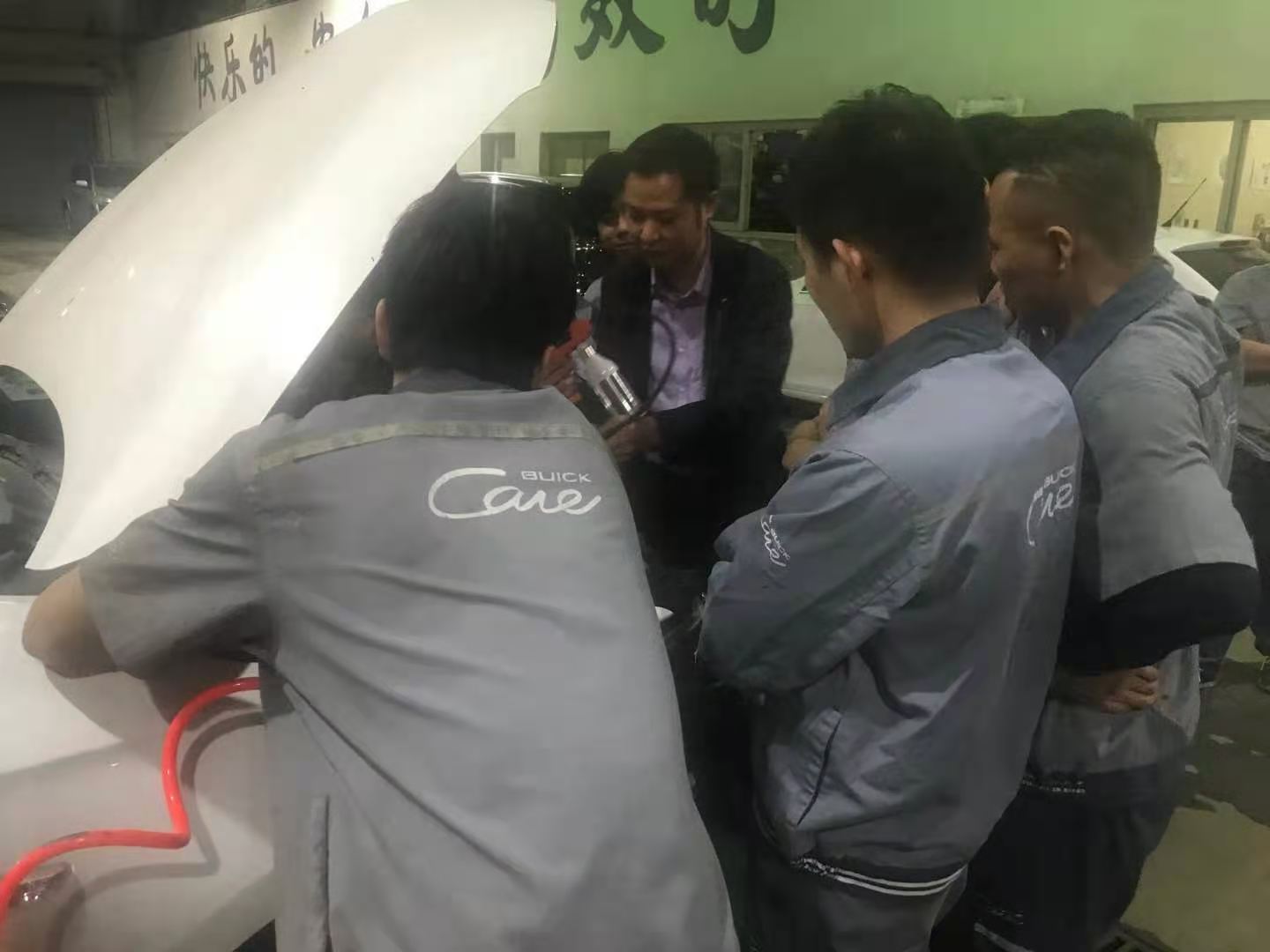 全體人員在別克汽車試驗(yàn)基地為每輛渦輪增壓車清洗渦輪增壓系統(tǒng),在施工操作中,向各位施工員,實(shí)實(shí)在在地展示優(yōu)道渦輪增壓清洗項(xiàng)目的效果。