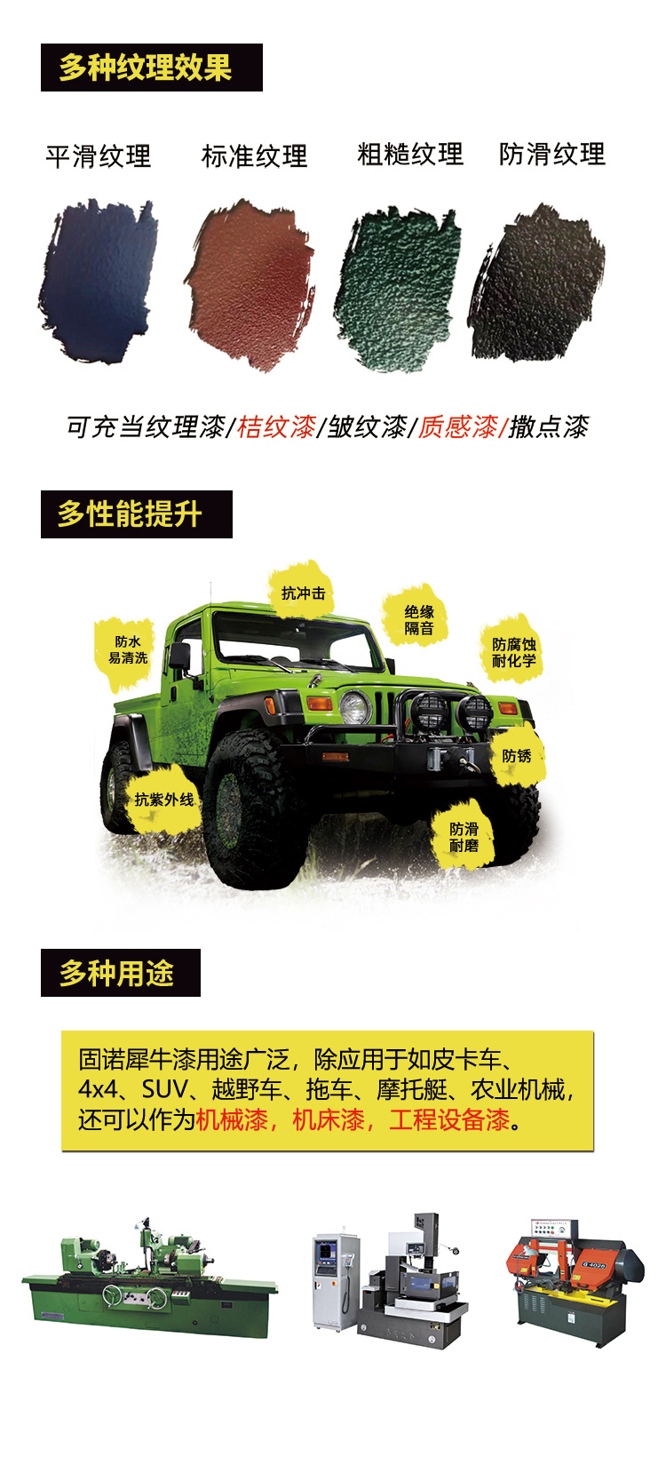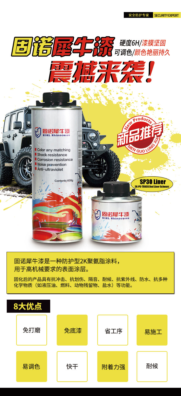 固諾犀牛漆是一種超高硬度耐磨防腐抗UV涂料,目前廣泛應(yīng)用于船舶、汽車、工業(yè)商用等領(lǐng)域。